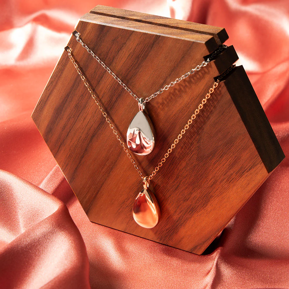 Our Teardrop Pendant holds a small amount of a loved one's ashes andĀ is offered in a silver and rose gold color andĀ is handcrafted with care by our skilled artisan jewelers. A great complement to a Living Urn tree burial, this high quality stainless steel pendant and wear it to honor him or her.